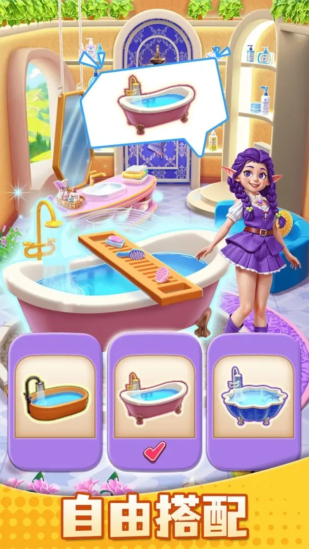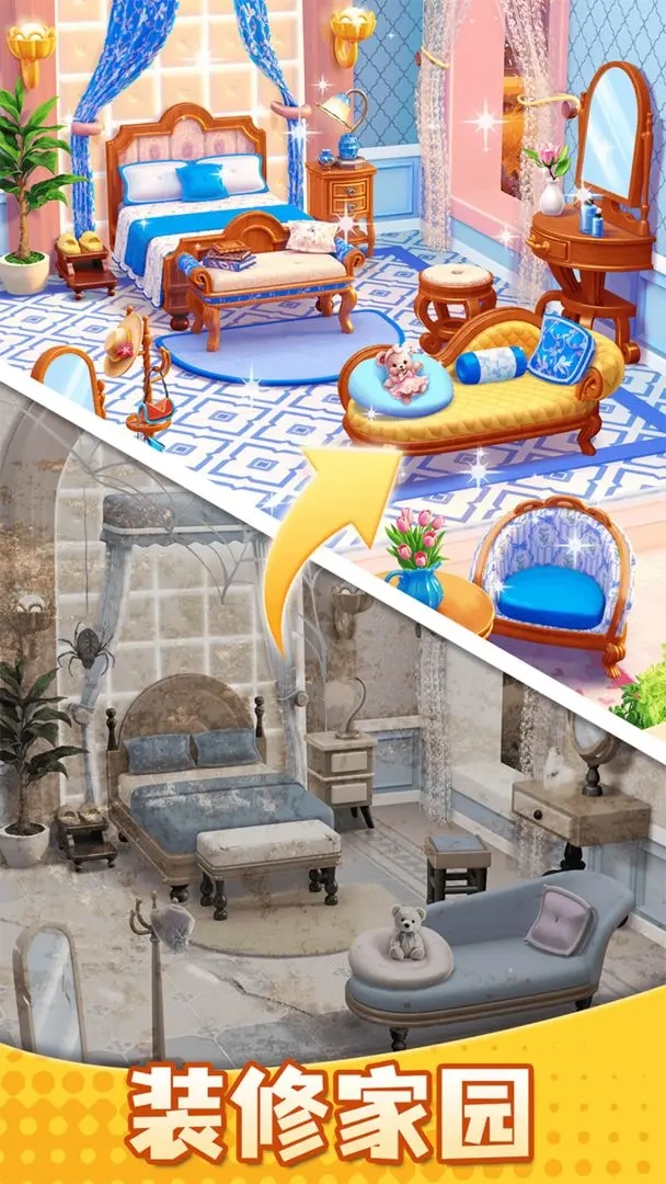 2.模拟经营乐趣:利用消除所得资源,玩家可投身城堡重建和装修,逐步解锁新区域和功能。