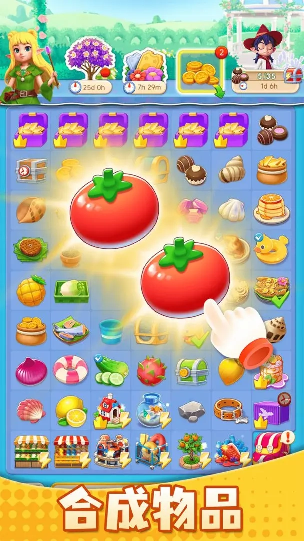 4.美食合成艺术:通过消除方块,玩家可合成各式美食,满足神秘顾客需求,进而赚取金币和经验值。