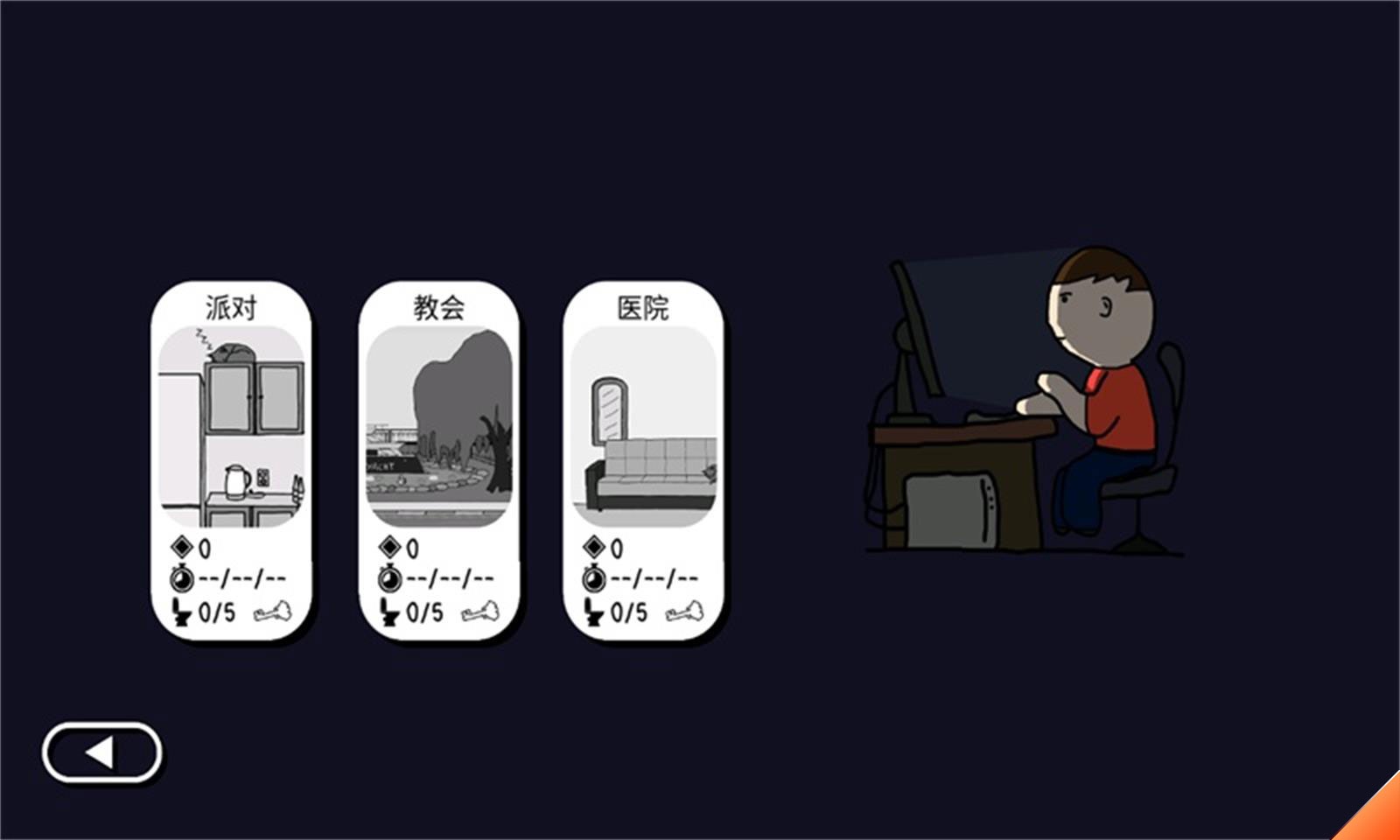 你需要快速找到那只到处乱窜的老鼠,在碰到它的瞬间取走它身上的钥匙(老鼠可能藏在厨房、二楼沙发旁、保洁大妈脚边或一楼前台)。拿到钥匙后才能坐电梯到地下,在医生回来前躲起来。另外,最右边有一道铁门,得集齐三个关卡的三把钥匙才能打开。