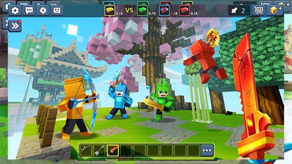 用获取到的资源可以购买方块、剑、弓箭、火焰弹、陷阱等各类道具供你挑选,还有多种击败对手的方法等待你去探索;不管是近距离搏斗、远距离攻击,还是运用技巧击杀敌人,只有你想不到的,没有你做不到的!