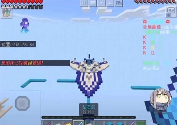 当其他队伍的床全部被摧毁时,只需用钻石剑完成最后的收尾工作就可以了。