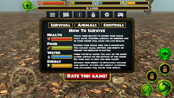 蟒蛇模拟器中文版是一款画面极为逼真的蛇类模拟游戏,它的英文名也叫Snake Sim。在游戏里,你将化身一条巨蟒,在冒险过程中遭遇形形色色的危险与困局,既要想办法完成繁衍后代的使命,又能体验到丰富多样的玩法。通过这款游戏,你还能更深入地了解蟒蛇的生活习性,透过蟒蛇的视角去探索游戏里庞大的生态系统,同时维持自身的状态,尽情享受游戏带来的乐趣。