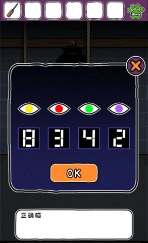 回到密室,用小刀割断棕猫身上的绳索,接着回到第一个房间,点击笼子并输入“8342”,就能得到植物。