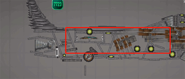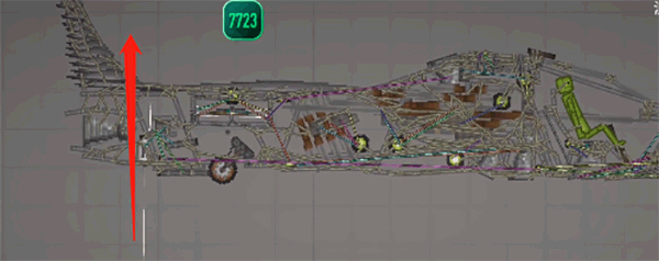 需要注意的是,这种不稳定的结构必须加上支柱——也就是机头中间的长铁块,将其调成无重力且不碰撞的状态,然后连接到机头外壳就可以了。