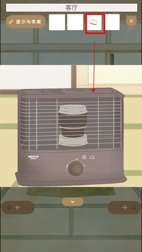 3、(客厅场景)点击火炉,将右侧的盖子打开后,可获取【油壶】这一道具。