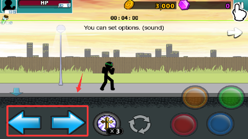 2、左边红色框框中的区域用于控制角色的左右移动。