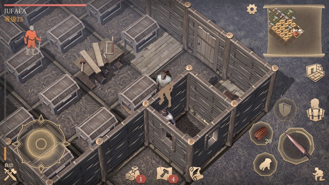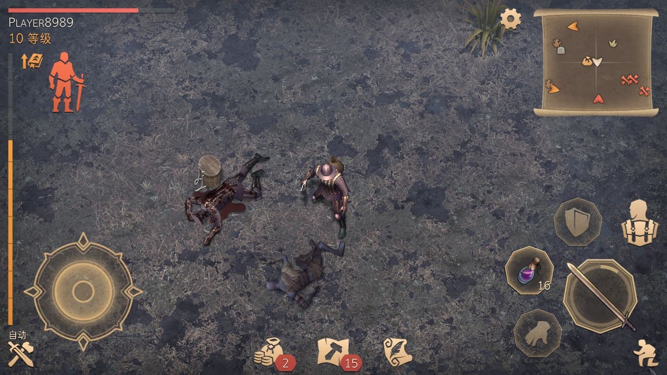 再说说开自动战斗的问题:要是副手拿着火把,突然遇到个实力和你差不多的NPC,想打死他该怎么办?这时候可以提前准备:靠近他的时候点开自动,然后切背包喝两口加工过的血,再关掉背包看结果——一般都能赢,要是怕输就多喝两口。