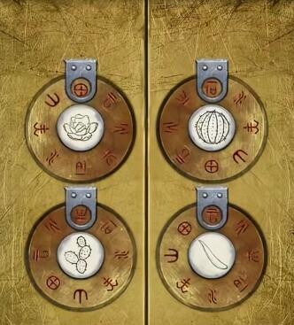 把钟表调到九点半,用电胶带缠住电线后插入插头,接着放入磁带就能得到摆菜的顺序,按照图示操作即可,之后放入符纸就完成了。