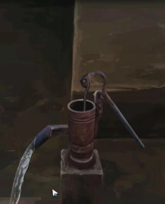 在右侧的书柜里能找到压井的把手,左侧的脸盆架上则可以拿到香皂和脸盆。