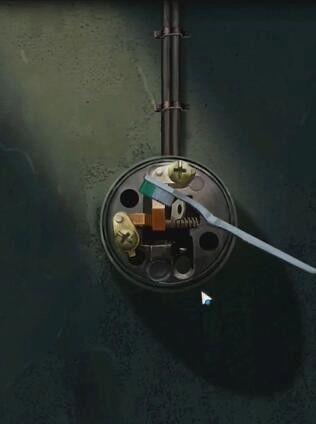 出去之后,在巷子的修鞋摊能拿到开关线,接着把旁边的红点机关按照图示摆放好,就能得到剪刀了。