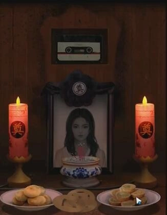 打开旁边的门,在椅子上用香皂获取电子蜡烛,接着把它放置在遗照旁边,就能得到磁带。