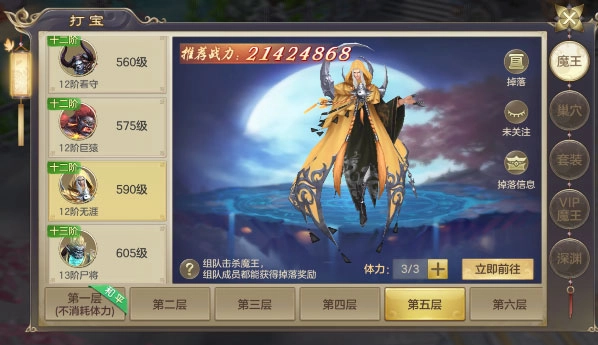 真灵岛与图腾秘境新添了18阶、19阶的魔王,满足对应条件后就能发起攻打。