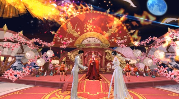 婚礼举办过程中,设有不少趣味活动,像堵门环节——新娘与伴娘团、新郎与伴郎团会被一道墙隔开。婚礼正式启动后,新郎和伴郎团能拆墙,新娘和伴娘团则可补墙,只有当墙被拆破,新娘与新郎才能相见,这是不是和现实里的婚礼颇为相似呢!至于拼酒、品尝美味佳肴这类活动,就留待各位玩家亲自去感受啦,参与婚礼的玩家都能得到相应的道具奖励!