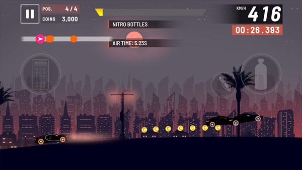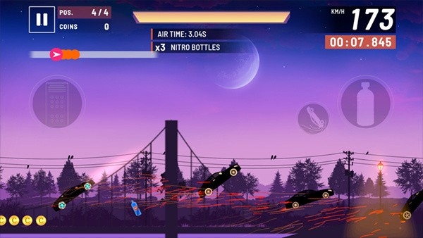 3、全新的横版2D闯关玩法,为玩家带来全新的赛车驾驶乐趣。