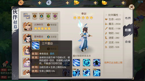 奉剑堪称玩家初期心中无可替代的“女神”伙伴,兼具高颜值与四段单体爆发能力,输出暴力程度拉满。前期凭借“三千雷动”技能就能轰出巨额伤害,是过渡阶段最受青睐的伙伴之一;更重要的是,招募她后可解锁两道命缘,带来大量属性加成。无论你是偏爱颜值的外观党,还是追求强度的实力党,奉剑都是必入的选择。尽管后期输出可能略显不足,但作为前期过渡的单体爆发伙伴,她的表现依旧十分出色!