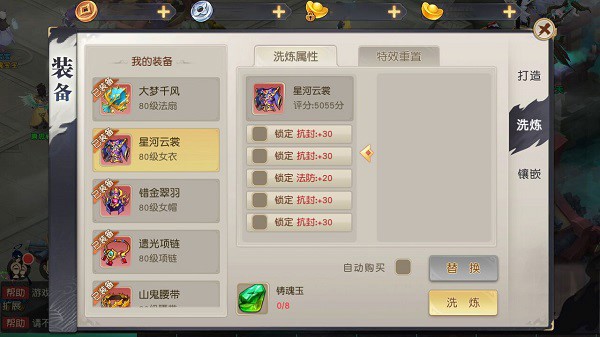 技巧1:前期进行洗炼操作时,建议优先关注洗出属性的颜色,不必过分看重战力总分,也不要因为出现的是自己暂时不需要的属性就立刻重新洗炼,否则会消耗大量洗炼材料;尽量多洗出几个红色字的属性并保留下来,以备后续使用。