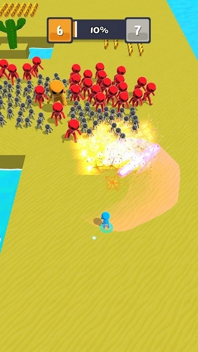 当遭遇敌人时,角色会自动停止移动并触发大范围的光剑清扫攻击;击败敌人能累积进度,战斗中需留意敌人的分布情况,合理把握角色移动和发起攻击的时机。