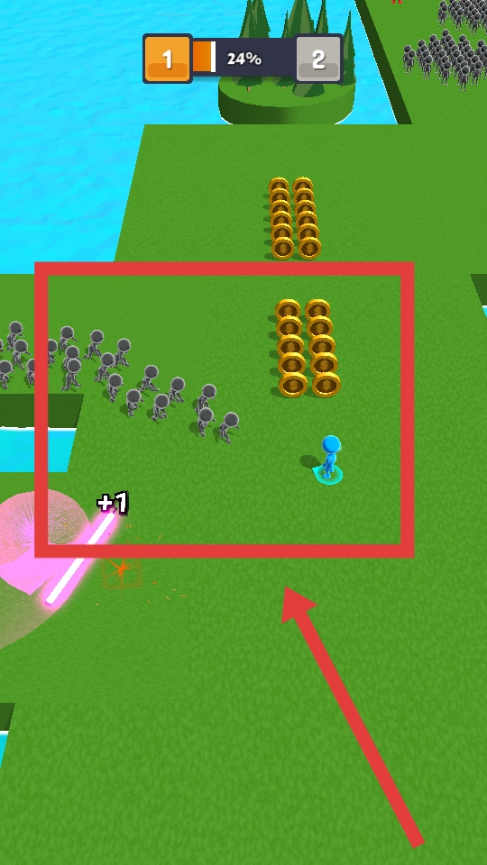 在推进关卡的过程中,除了击败敌人外,还能收集沿途的金币;持续采用停止移动并释放光剑的方法,既能清理敌人,又能获取金币,以此提升关卡进度,朝着终点不断前进。