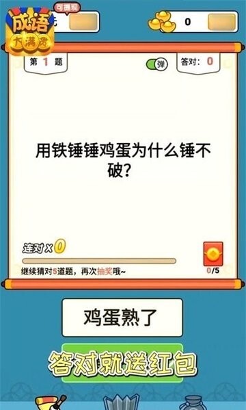 无需与他人较量,玩家独自完成答题,把所有关卡的金币都收入囊中。