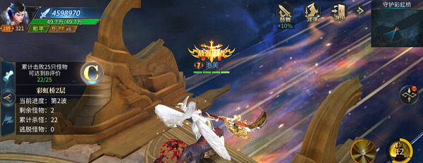 守护彩虹桥(单人玩法):可产出金币、经验,还有大量用于神翼升级的材料——幻空之羽。