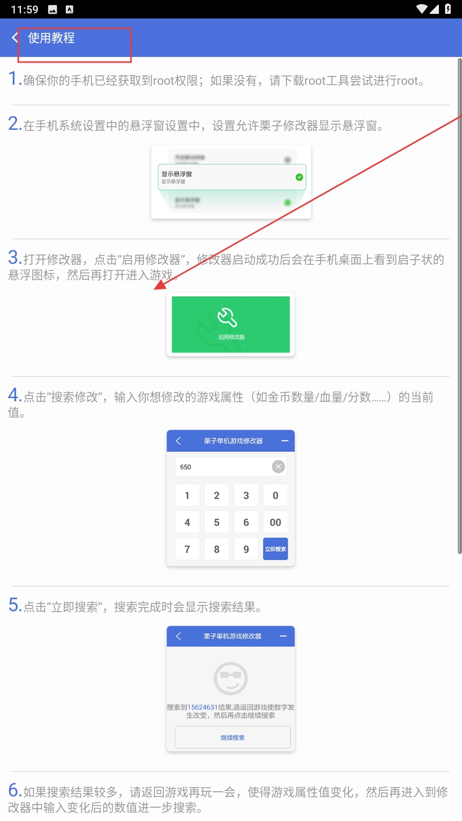 2、依照教程操作,确保手机成功获取【root权限】,并在设置中开启悬浮窗显示权限。