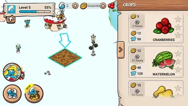 2. 可收获蓝莓,借助应用内购买加快庄稼和村庄成长。
