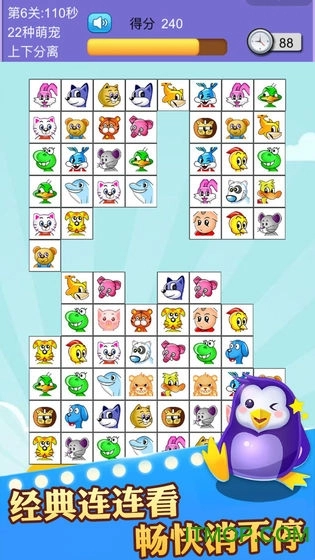 萌宠消不停这款游戏能让你重温经典连连看的乐趣,还有丰富多样的关卡等待你去挑战!游戏规则很简单:连续点击两个相同的图案就能将它们消除,当所有图案都被消除后,你就可以顺利进入下一关啦。而且每一关都设置了不同的时间限制和掉落规则,简单易上手的玩法搭配丰富多变的体验,绝对让你百玩不厌。