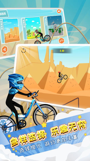 火柴人单车是一款单人休闲游戏,玩家能在其中开启清新的单车冒险。这款游戏的体验带着复古经典的韵味,十分有趣。游戏过程中,玩家需要在反复的失败与尝试里摸索出最佳路径和方法。整体采用轻松舒适的简约风格,期待你来挑战关卡。
