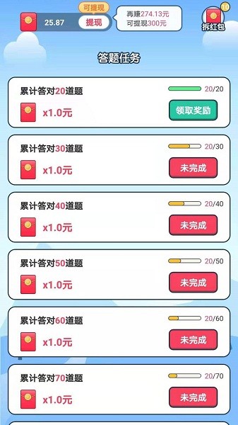 答对的越多赚的越多,海量丰富题库内容等你挑战