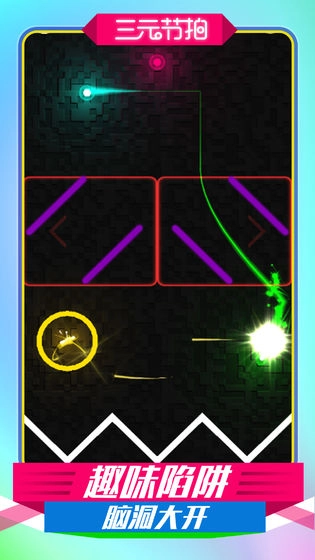 《三元节拍》是一款趣味十足的音乐节奏游戏。在游戏里,玩家会进入一个神秘空间,需要跟随音乐节奏击打下落的小球——节奏越准、击中的小球越多,获得的积分就越高。你可以通过各种方式让小球跳跃,凭借极致的律动来引导小球颤动;每种节奏变化都有固定的颜色标识,帮助小球顺利落到指定位置。不过要注意,每个小球都有自己的颜色标记,你得仔细区分哦。