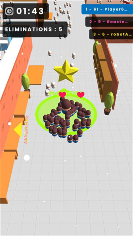 总体而言,传统IO类游戏的玩法往往大同小异,核心目标都是争夺第一。而这款游戏的玩法则更为简洁直观:在2分钟的限时内,你需要不断招募、吸纳更多人群,让自己的队伍变得更庞大。随着人数增长,你的力量会越来越强,前方的挡板、教室墙壁等障碍都能轻松推倒——前提是你的队伍人数足够多。除了招揽那些尚未站队的“空白”人物,击败比你弱小的其他队伍,也是快速壮大自身的关键。所以,快来体验一下吧!