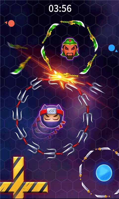 3、上手容易又有趣:游戏规则简单易懂,想要得分就得让飞刀精准穿过环里不停旋转的刀刃,把你的飞刀投向你想靠近的那个圆形飞刀就行。