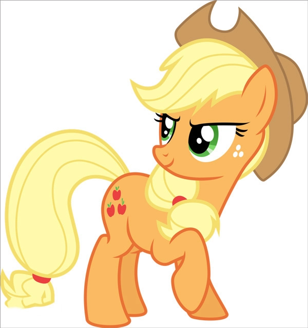 有着橙黄色的身体、金色的鬃毛和翡翠绿色眼睛,头上戴着一顶牛仔帽的小马。它的可爱标志是三颗苹果,是小马驹系列第一代就存在的元老级小马。