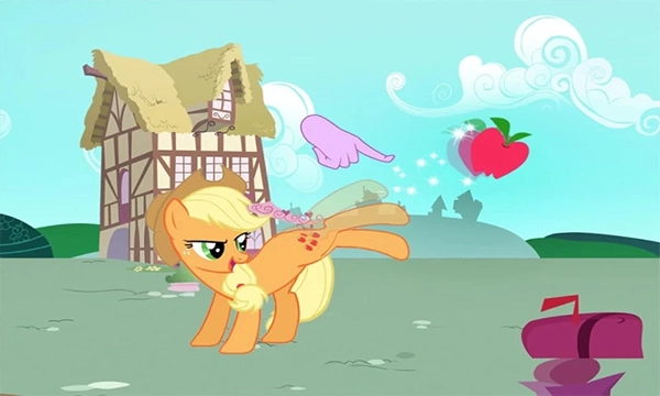 苹果嘉儿在小时候对都市生活充满向往,于是借住在远方亲戚家中。然而,她逐渐意识到都市生活并不适合自己。直到目睹云宝制造出彩虹音爆的那一刻,她才找到了真正的归宿,与此同时,她的可爱标志也随之显现。而可爱标志出现的关键契机,正是“对自己诚实”。