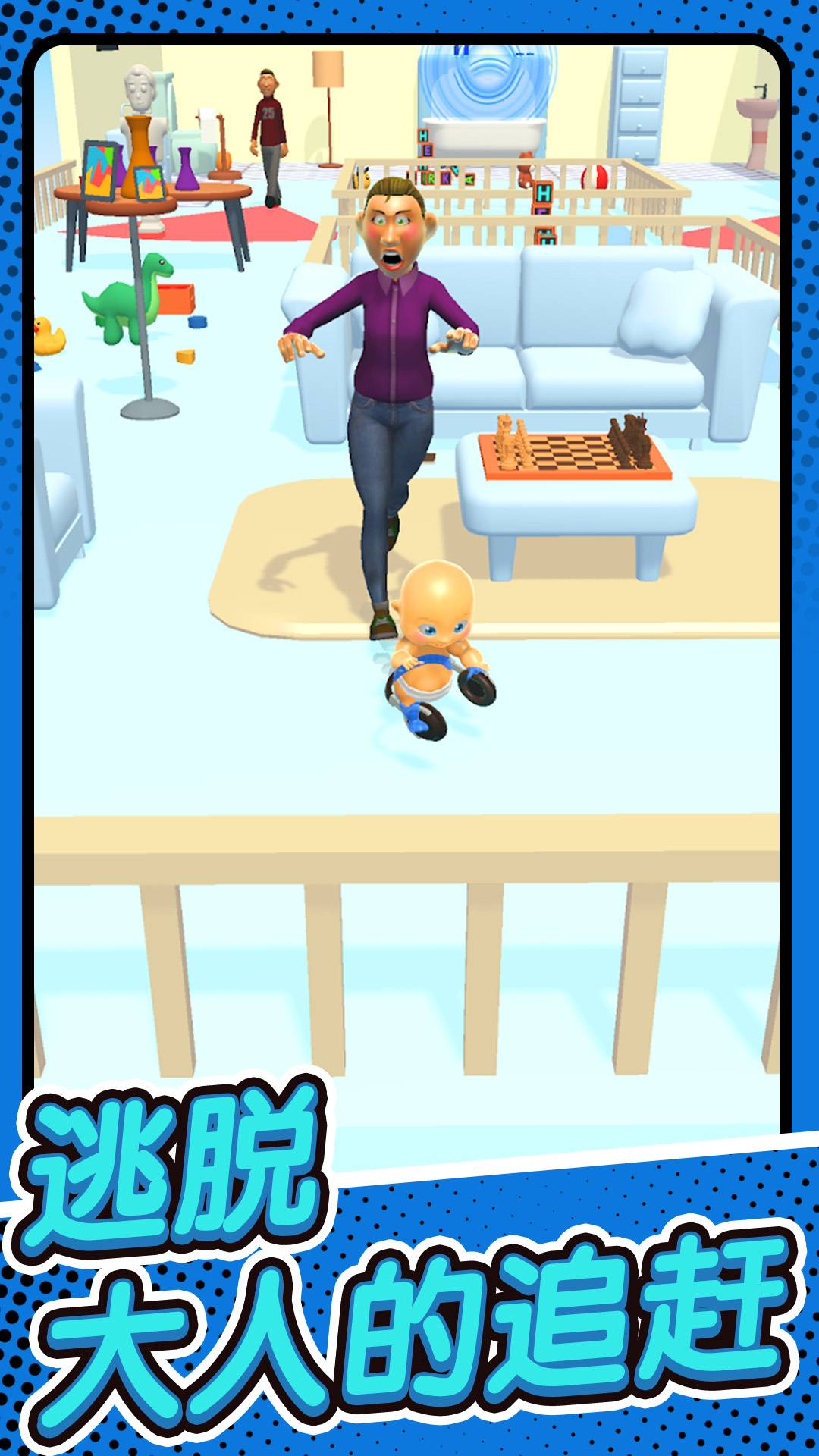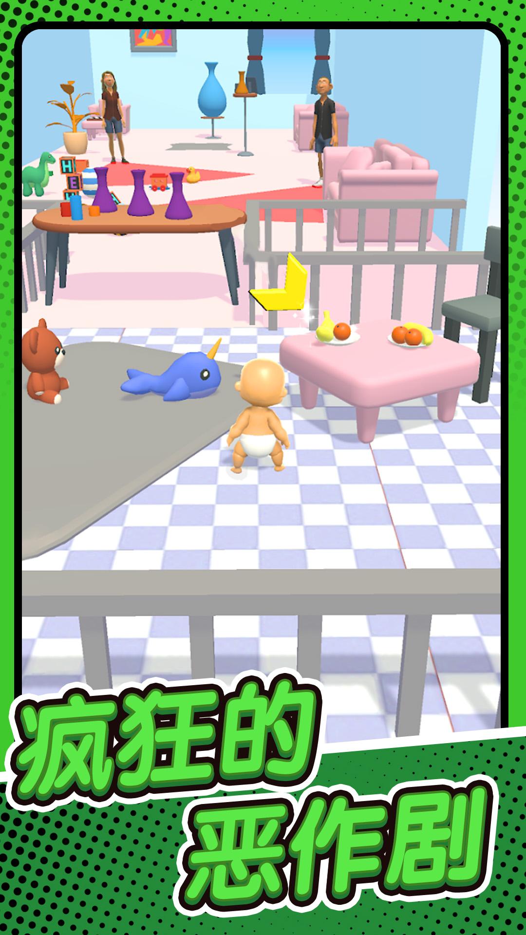 1、多样的服装体验:游戏里设置了不少萌趣的婴儿服饰,既有趣味性又具挑战性,玩家能够自主进行搭配,通过操纵杆控制婴儿移动,躲避父母的注意。
