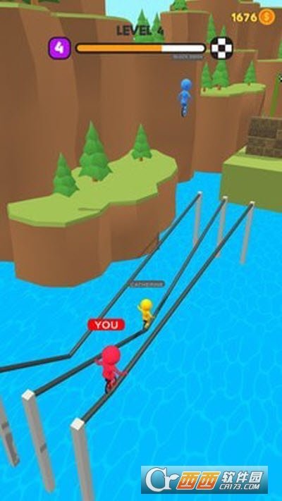 绳索骑乘玩法内容十分丰富,色彩搭配与渲染营造出超棒的视觉效果,兼具高娱乐性与挑战性。绳索的高度和长度会根据场地不同而有所变化,游戏操作简单易上手,玩家能操控小人在绳索上保持平衡行走,十分考验反应能力。