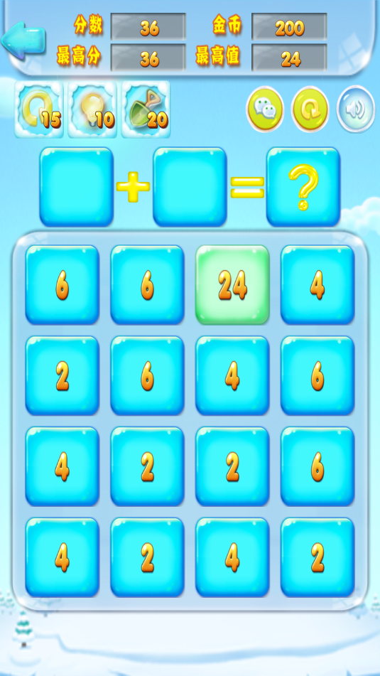 在加加模式下,先点击两个数字,接着点击第三个数字,需确保前两个数字相加的结果与第三个数字相等。