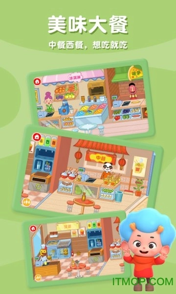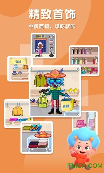 这里涵盖餐饮、运动、服装、乐器、美发、珠宝、汽车、杂货店等8个场景,34种趣味角色可供自由选择扮演,还有几百种物品配件能随意搭配使用,让小朋友们充分体验到最真实的购物乐趣。