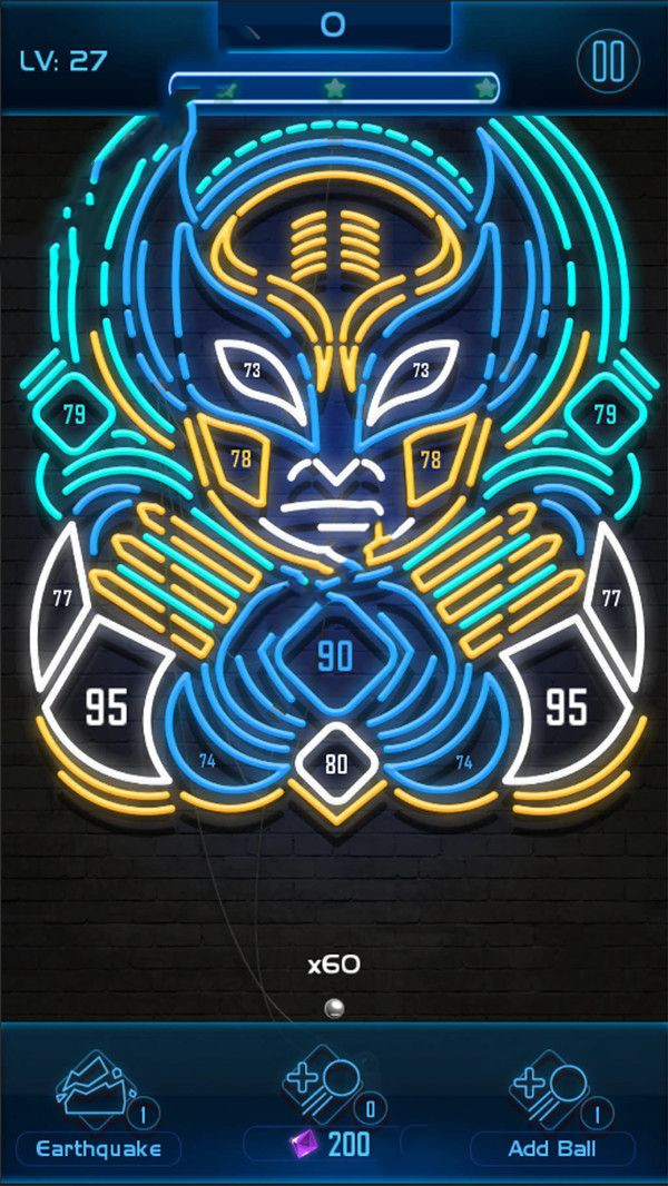 爆射霓虹灯是一款色彩鲜艳、玩法别具一格的休闲射击类游戏。从游戏名称就能看出,玩家在游戏里的核心操作,就是操控火炮把那些由霓虹灯组成的千奇百怪的造型彻底摧毁。游戏采用竖版设计,玩起来的感觉和竖版射击游戏有些相似。游戏拥有极为丰富的关卡,足足上百个关卡等待玩家去挑战。除了游戏的关卡外,还加入了自定义关卡功能,玩家可以根据自己的想法设计专属关卡。