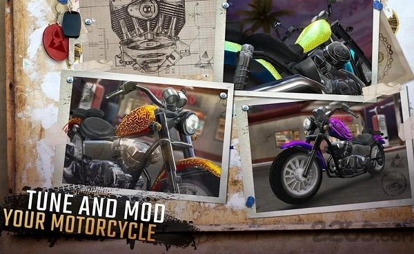 每辆自行车都配备专属的额外配件,包括总生命值、差错奖金、高速奖励或是错误奖励。前往车库挑选一款高性能摩托车,然后对车辆进行调校并自定义其外观。