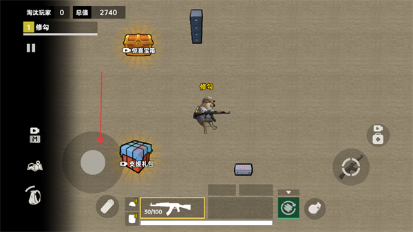 2、战局内左上角显示队友信息已经淘汰玩家人数和背包内物品价值,通过左下角轮盘控制角色移动。
