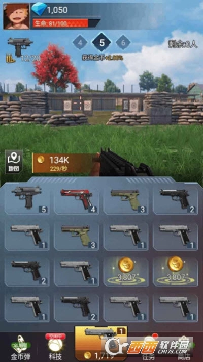 《吃鸡前线》是一款主打射击题材的枪械合成游戏,玩家能通过合成更高级的枪械增强自身实力,还可以通过点击操作进行第一人称射击。游戏里枪械的射击手感与后座反馈都设计得相当出色,玩起来既轻松又爽快!快来一起体验《吃鸡前线》吧!