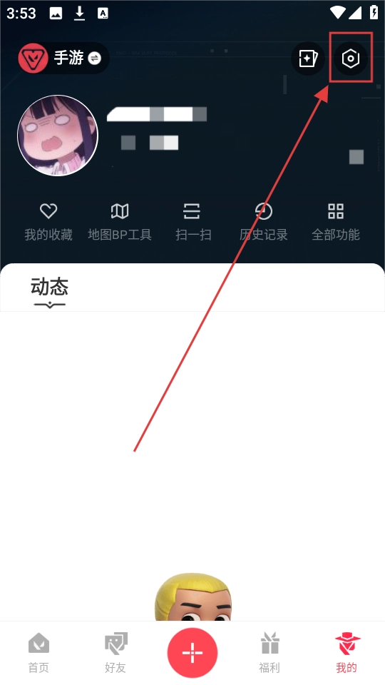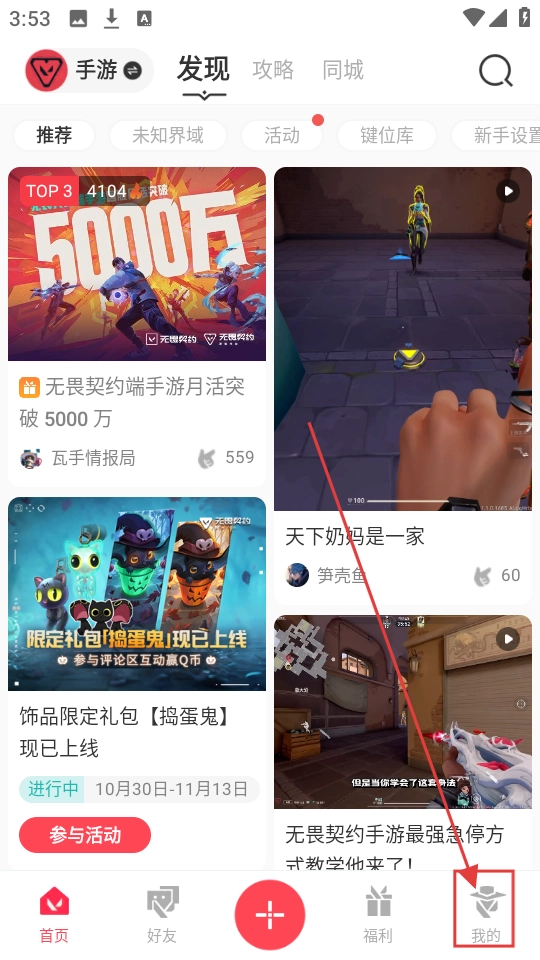1、第一步先打开掌上无畏契约应用,登录自己的账号之后,点击界面右下角的“我的”选项,然后再点击页面右上角的设置按钮。