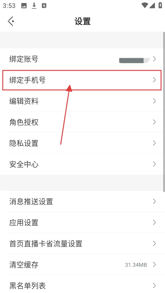 3、进入设置页面后,点击【绑定手机号】选项,就能进入手机号绑定页面了。
