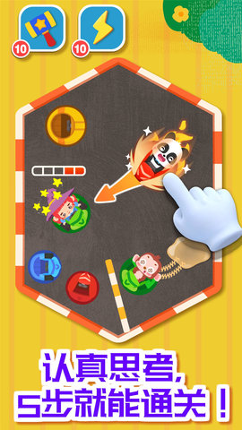 奇妙碰碰车是一款超有趣的休闲益智儿童游戏,它就像一场需要动脑筋的障碍挑战,特别考验宝宝们的随机应变能力。游戏里设置了固定的通关步数,这对宝宝们的脑力可是不小的考验呢!现在呀,只剩下5步机会啦!那宝宝们得好好想想,到底该先消除哪种颜色的碰碰车呢?有没有更巧妙的行驶路线可以选择呀?宝宝们要赶紧开动小脑筋,把每一步都安排得妥妥当当才行哦!