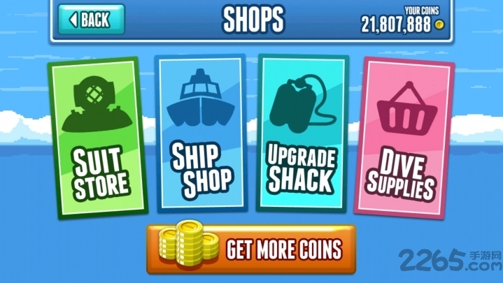 当玩家积累起足够的财富后,就能用从海底获取的财宝来升级氧气瓶、探险船、武器等装备,或是为潜水员更换装备以提升潜水能力,进而能够开展更深海域、更长时间的海底探险活动。