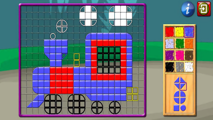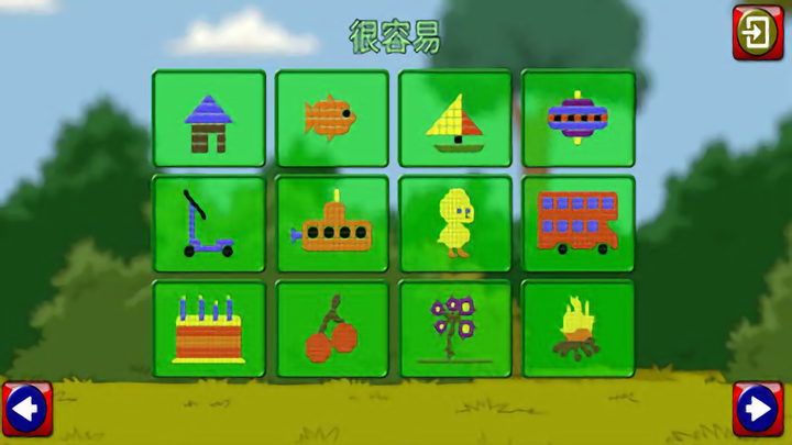 这款游戏很适合助力孩子们锻炼大脑的形象思维能力,玩家需要运用系统提供的几种色块来完成填充操作,最终把整个画面拼凑成一幅完整的图像。这些图像多是日常生活里各类常见物品的简易画作。