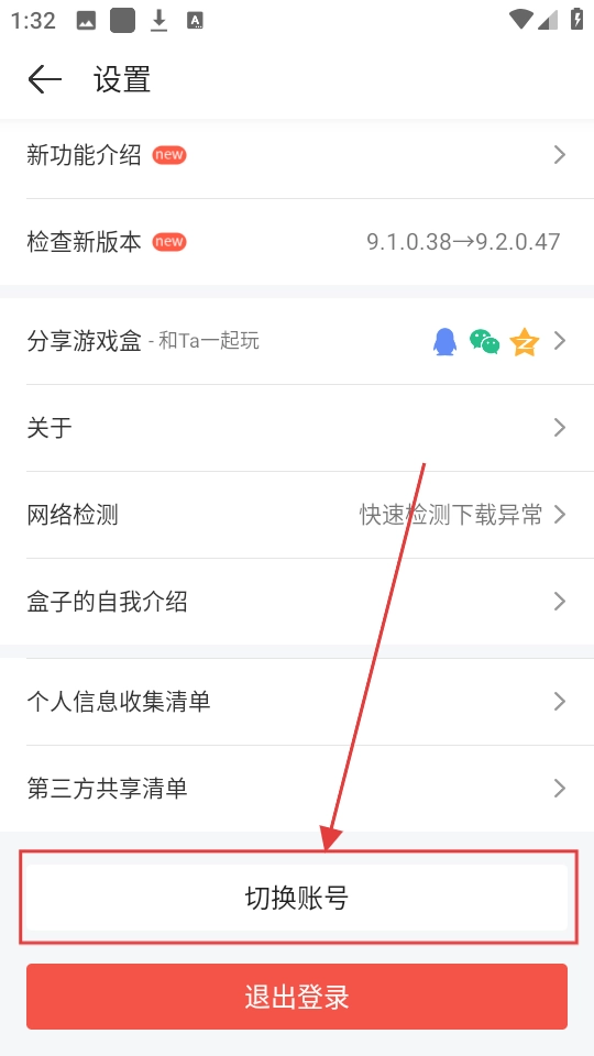 3、进入设置后点击【切换账号】选项,即可进入账号切换页面。