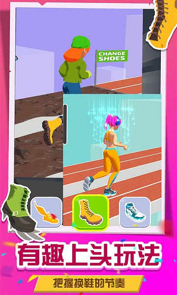 ◆新奇跑酷玩法,根据道路换鞋向前冲