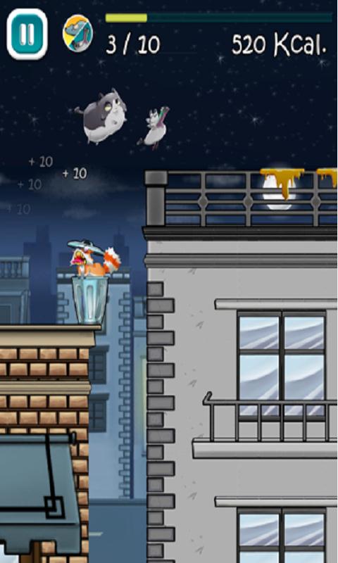的画风卡通清新,整个场景都设定在楼顶,这里堪称猫咪的乐园:吃剩的鱼、老鼠、鸽子应有尽有,食材丰富到连加菲猫来了都能吃饱。游戏